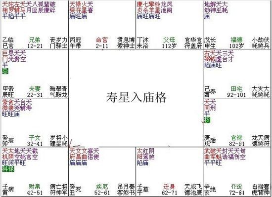 紫微斗數富貴格局:壽星入廟格
