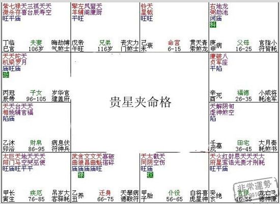 貴星夾命格,就是指命宮兩邊被貴氣星曜所夾,但仍須命宮三方四正諸星入廟旺吉化方有富貴成就,倘若夾的是家宮,則氣力不顯,作用不大。