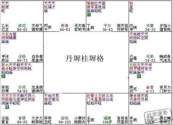 紫微斗數中,“格局”指的是某類星在某些宮位,以及某類星與某類星同宮或加會等等情況。通過這些組合可以顯示出命主屬於某一類型的命運,或兇或吉、或貧或富、或貴或賤,或吉凶皆有等。紫微斗數中的格局一般分為兩類,一類是屬於富貴格局;另一類為貧賤格局。一般而言,一個人的命盤所得吉格越多,其人之富貴層次當然出就越高,成就也就越大。本期,非常運勢紫微網要為大家介紹富貴格局中的一種:丹墀桂墀格。供大家參考!