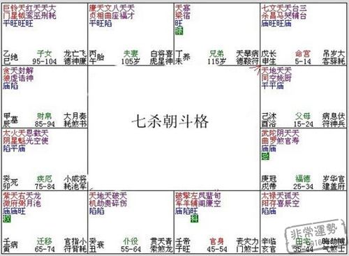 紫微斗數中,“格局”指的是某類星在某些宮位,以及某類星與某類星同宮或加會等等情況。通過這些組合可以顯示出命主屬於某一類型的命運,或兇或吉、或貧或富、或貴或賤,或吉凶皆有等。紫微斗數中的格局一般分為兩類,一類是屬於富貴格局;另一類為貧賤格局。一般而言,一個人的命盤所得吉格越多,其人之富貴層次當然出就越高,成就也就越大。本期,非常運勢紫微網要為大家介紹富貴格局中的一種:七殺朝斗格。供大家參考!