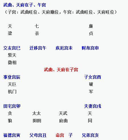 紫微斗數是中國傳統命理學中的一種,主要是根據人的出生年月日時,來排出地盤十二宮的位置以構成命盤,參看各宮位的星系之間的關係,來預測一個人命運的一種術數。透過紫微命盤分析,我們能知曉人的一生總體運程和吉凶禍福。本期紫微命盤分析就帶大家了解【武曲、天府在子、午宮】的命盤情況,一起和非常運勢紫微網來看看吧!